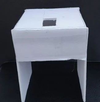 Someone in your group or area may need to help make stands to assist in video-recording poll tapes. The stands should be approximately 9 inches tall with a minimum of 4 inches for the opening on the bottom where you will be feeding the poll tape through. There should be a flat surface on top to rest your cell phone and an opening in the top that is approximately 3” x 1.5” to allow the camera lens to focus onto the poll tape, which will be pulled underneath the stand. The camera and stand will not be moving.